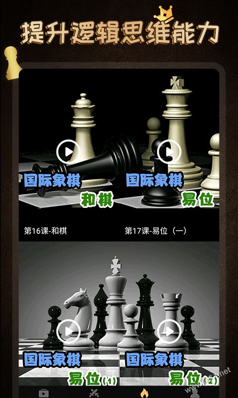 国际象棋学堂 app 是一款覆盖全年龄段国际象棋爱好者,尤其适配少年儿童智力开发需求的综合性棋类教学工具,集基础教学、对弈练习、棋谱分析于一体,提供从入门到进阶的完整学习体系,助力不同阶段学习者提升棋艺并锻炼思维能力。