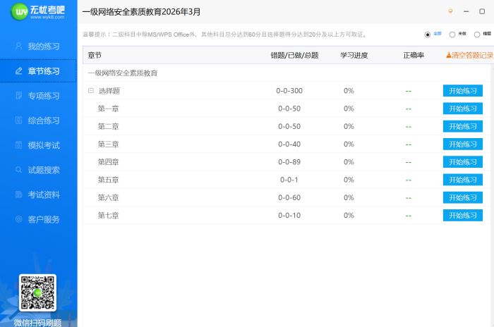 无忧考吧一级网络安全素质教育模拟考试软件 V2026.3 官方安装版