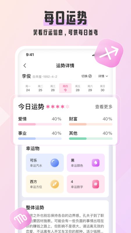 专为爱情占 卜和星座爱好者设计,具有解释、星座、财富、知识库等功能。