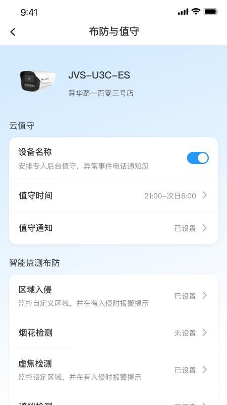 5、进行布放和值守管理,可自定义设置时间、通知和入侵等功能;