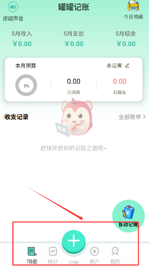 创建新的账单就能够在账单中记录当日的消费信息和数据;