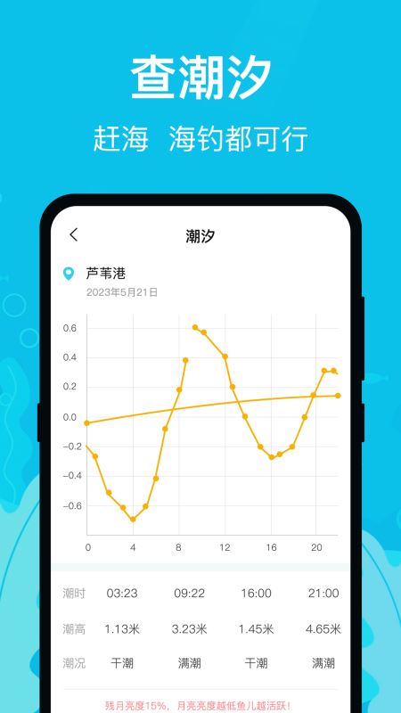 支持查潮汐表,用户可随时在软件上查看各样的潮汐预报,非常方便。