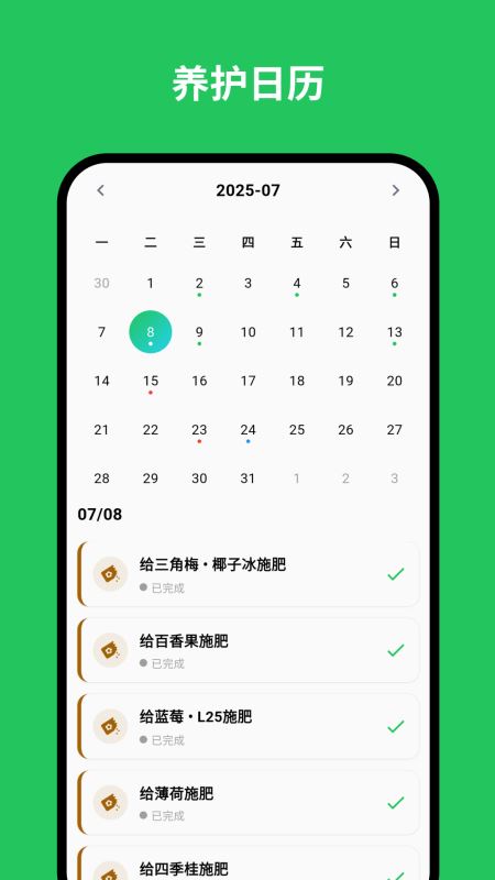 3、在日历视图中可以直观的查看自己每天的养护任务,更好见证植物生长。