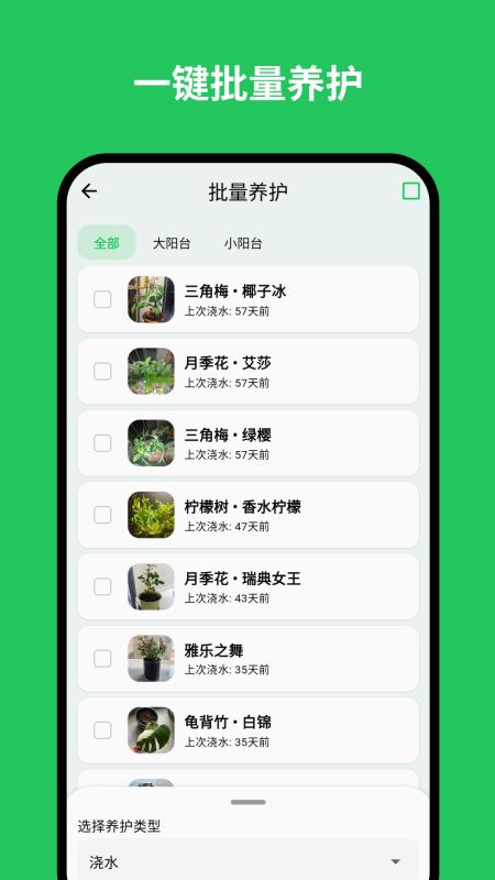 将大量植物的养护任务全部都聚合起来,批量化的养护模式让植物养护更简单;