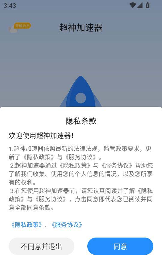 1、首先打开软件阅读“隐私条款”后,点击“同意”按钮进入APP