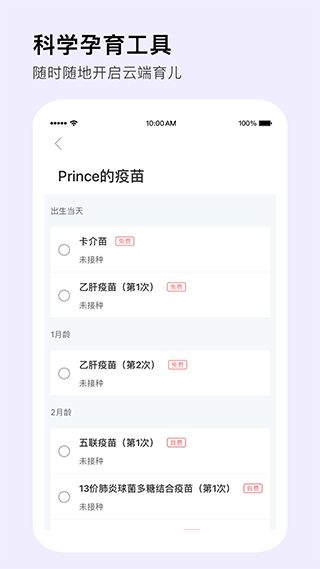 记录的各种产检信息、疫苗接种等都会同步到云端,这样可以确保数据不会丢失;