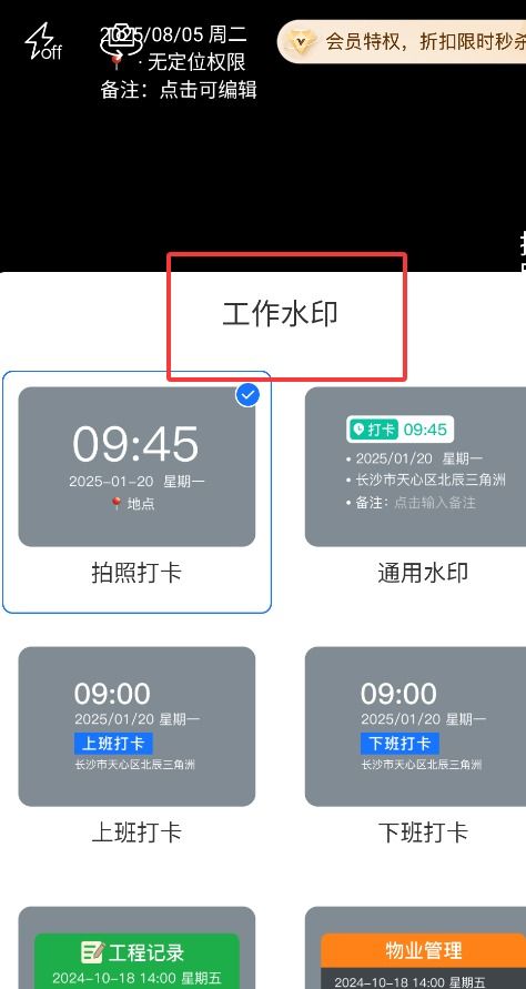 2、选择水印模版就可以直接使用,轻松套用模版进行打卡。