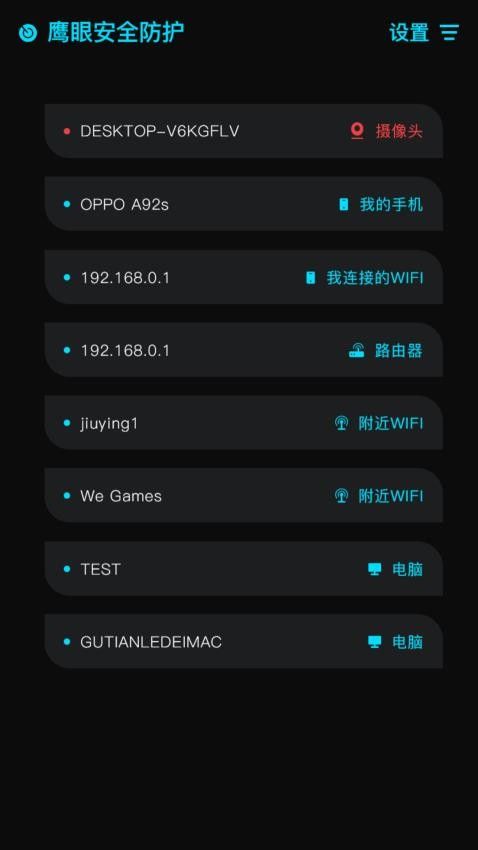 鹰眼扫描APP最新版是一款用于外出住宿检测周围隐藏摄像头的软件,对你当前居住环境中隐藏摄像头的实时检测,为你的住宿环境提供全方位的安全保障,防止被偷拍窥视,让你的隐私安全得到有效保护,强大的反偷拍功能软件,可以帮你快速检测出周围的可疑设备,给自己创造出一个安全的住宿环境,非常适合大家在外出旅行、住店租房时使用,可以检测出同一个局域网下所存在的每一个隐藏设备,软件中的检测隐藏摄像头功能非常专业、实用,是大家保护隐私,防止隐私外泄的必备软件,有需要的用户就快来下载鹰眼扫描免费版软件进行使用吧!