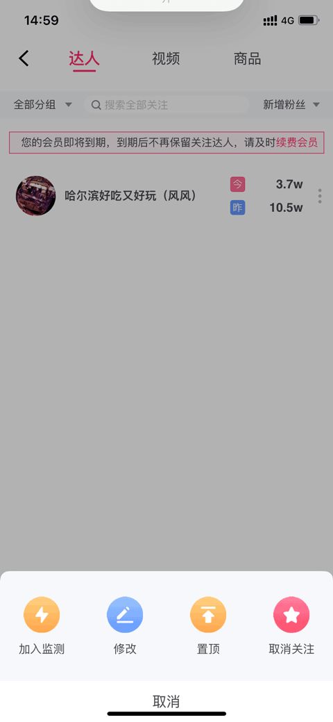 灰豚数据抖音版怎样取消监控数据的主播