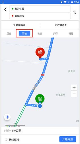 3.点击选择驾驶按钮切换出行方式即可