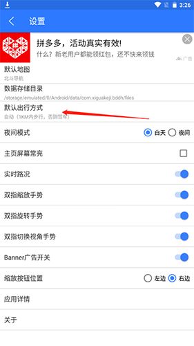 3.点击默认出行方式栏目