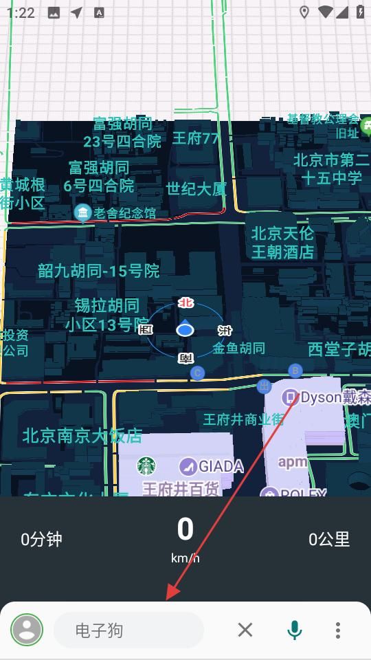 2、在搜索栏下方,点击电子狗功能,就可以启用此功能来规划的出行需求。