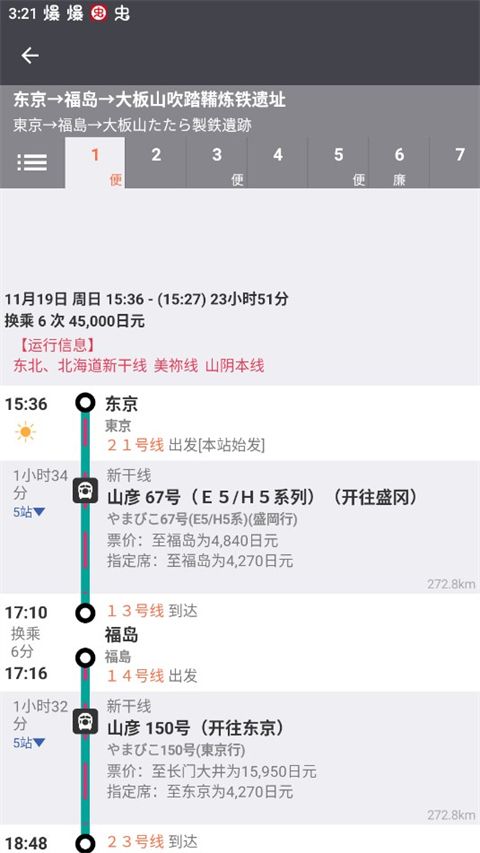 乘换案内日本版也叫做Japan Transit Planner,这是一款去日本旅游必不可少的导航app,能够提供日本国内所有的交通查找,无论是火车,飞机还是地铁都有详细的信息介绍,还提供了各种换乘指南,帮助用户轻松规划和导航在日本的各个城市和地区的行程。同时软件的操作也是十分简单,只需要输入起点和终点,应用程序将提供多种乘车方案,包括不同的交通工具和换乘站点,并给出相应的时间表、票价和预计到达时间。