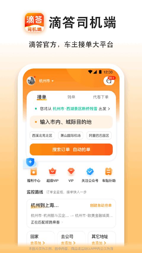 好单大单 特别多,系统自动对订单进行推送,附近订单优先抢。单单高价,再不用担心空驶费用。