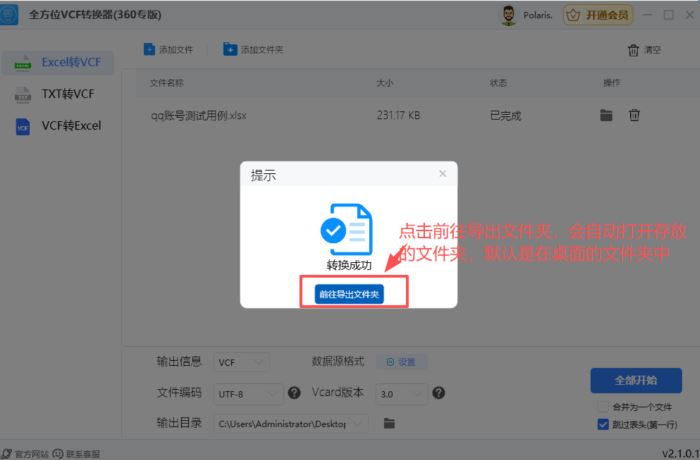 全方位VCF转换器电脑端使用的VCF格式转换工具,这款工具支持批量Excel/CSV/TXT转VCF、VCF转Excel/CSV/TXT,智能处理重复联系人,使联系人管理更加高效便捷等,本站提供的是这款软件的安装包,欢迎下载使用。