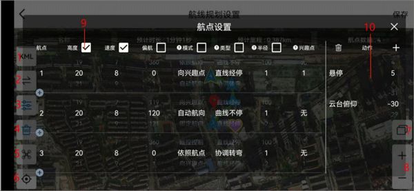 9:统一设置选项,勾选统一设置后,所有航点参数同步修改。