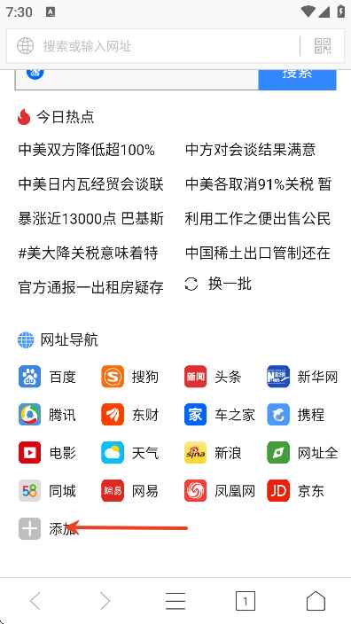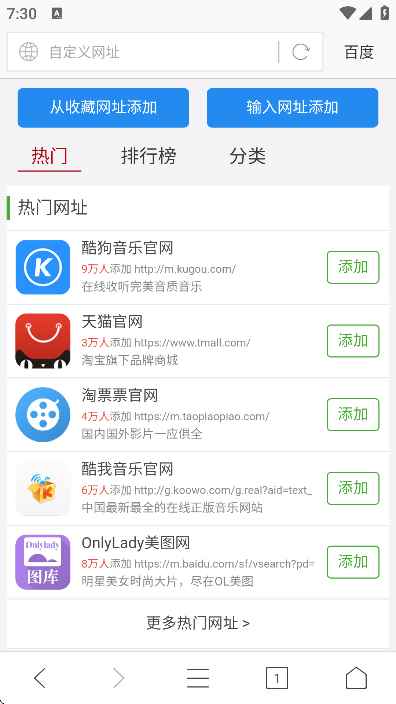 2、只需要点击【添加】之后选择网址直接点击添加即可;