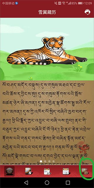 运行雪翼藏历语音后点击下方功能区即可选择各种内容。