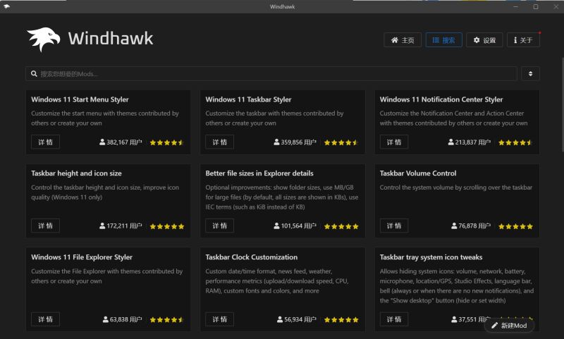 windhawk免费版pc端是针对 Win11 / 10 的自定义修改软件,它与传统的修改软件不一样的是,它采用了 “模块” 化,也可以理解为插件,通过安装不同的模块来实现一些功能,其他开发者可为其创建和贡献mods和修改,感兴趣就快来下载使用吧!