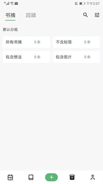4、在存档界面,我们可以查看自己的全部书摘、想法、标签和图片等内容,