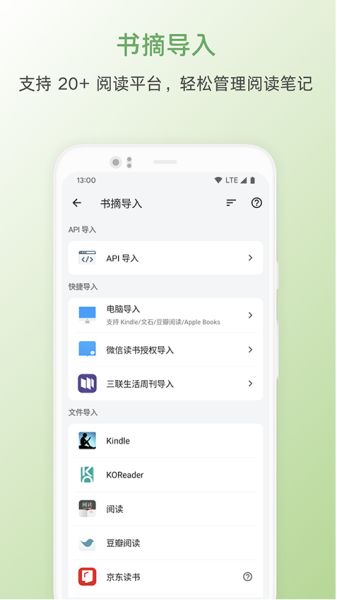 3、进入书摘导入界面,支持快捷导入、API导入和文件导入,