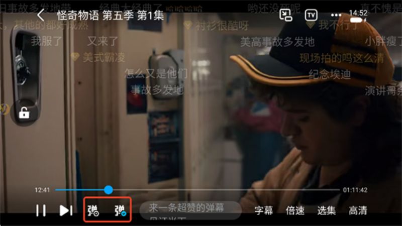 软件内弹幕是默认开启的,我们需要关闭/打开可以通过点击下方图中标记来实现。