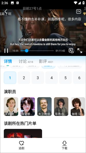1、打开人人剧场,在应用中浏览并选择想要观看的视频,比如小编这里选择的是"怪奇物语",然后点击播放按钮进入播放界面。