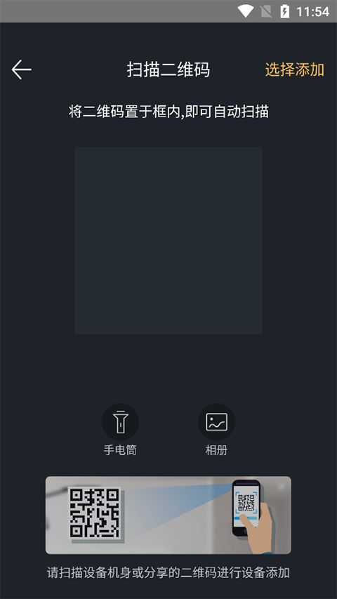 2、允许APP使用手机摄像头权限,直接扫码添加或手动选择添加设备型号。