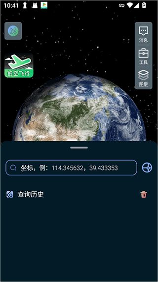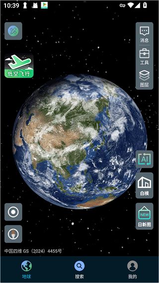 2、然后就可以进入到地球模型界面,可以点击低空飞行
