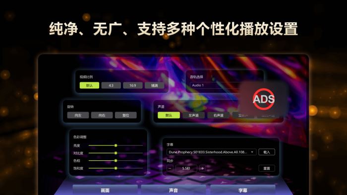 实时字幕精准匹配,支持字幕调节与声画同步调节,观看更自在。