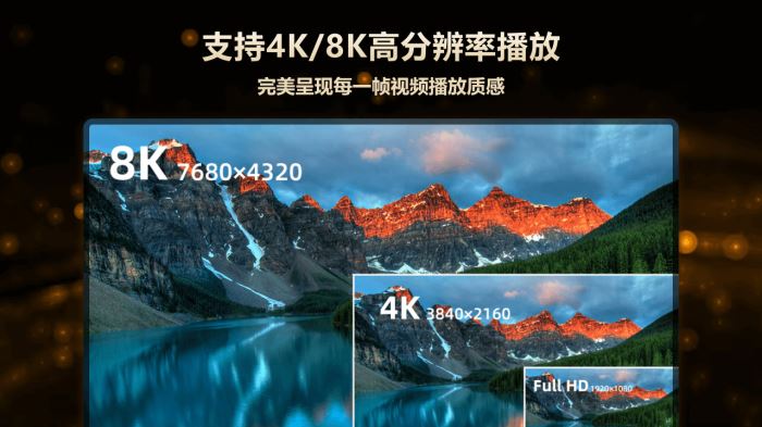 完美支持4K超高清、蓝光HDR视频播放,超清画质渲染,色彩还原更真实。