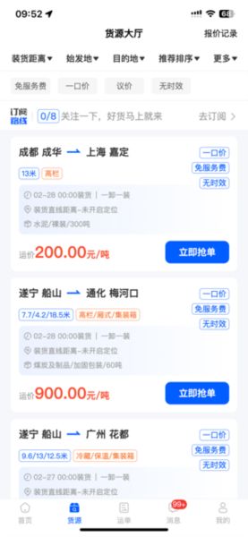 智能货源匹配:利用精准定位和筛选功能,让适合的货源主动找到您,一键操作,快速响应。