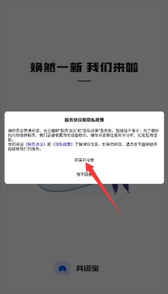 1、初次使用需阅读平台服务条款与隐私政策,确认后点击同意并接受进入应用。