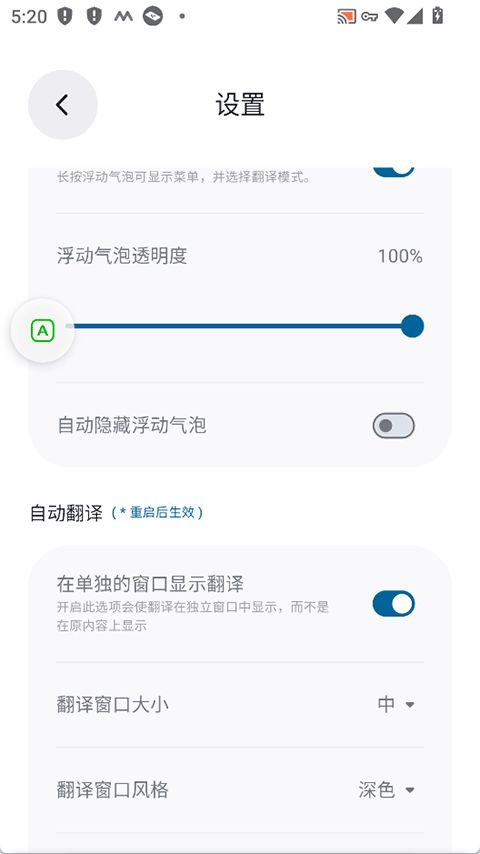 独创的悬浮气泡,无需切换应用即可在任何界面上即时翻译文本。