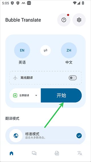 3、然后返回主页上点击【开始】翻译按钮