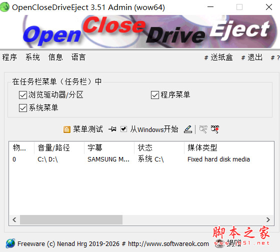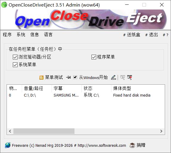 驱动器弹出关闭软件OpenCloseDriveEject v3.51 免费安装版