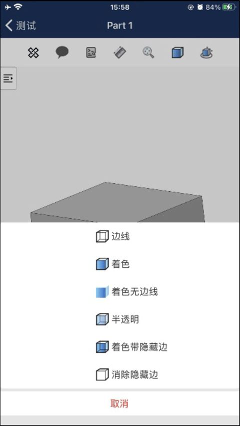 特征面板:显示当前零件的组成、基准面、建模特征,用户可选择特征的显隐。APP中暂不支持对零件的编辑,若想编辑零件,通过浏览器端实现零件的编辑。
