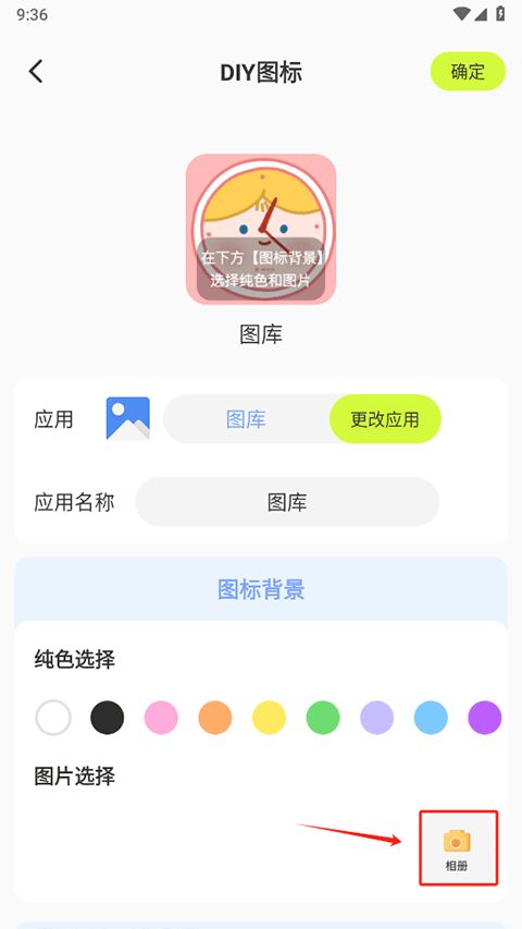 2、接着在diy图标页面内点击选择你想要链接的应用