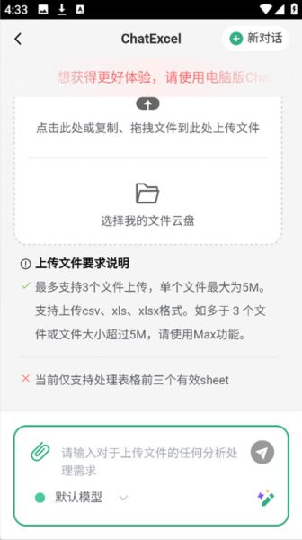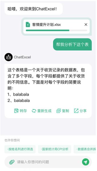 3、上传后就可以在输入框中输入你要处理表格的想法