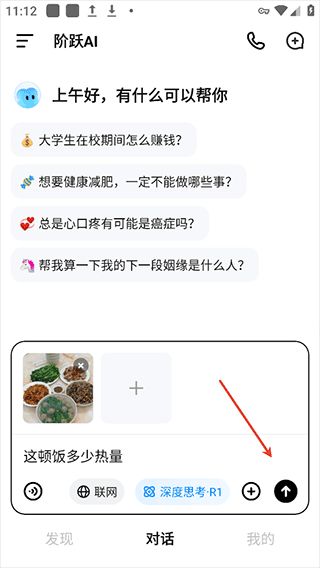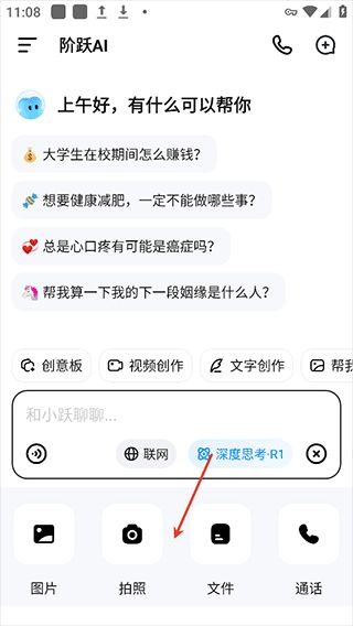 1、用户可以登录跃问app后在对话页面下点击右下角的加号按钮