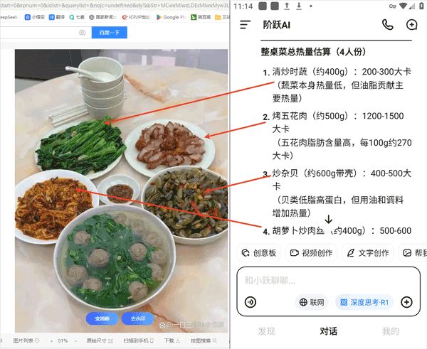 2、深度思考能力:接入Deepseek - R1满血版,能对文档、图片、表格数据等进行深度思考,提供更精准、全面的回答。