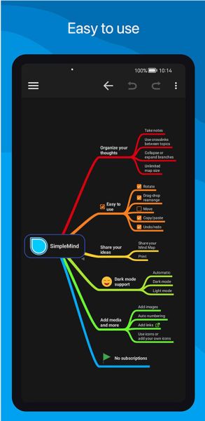 1、易于使用的阻力、安排和编辑直接在思维导图页面;