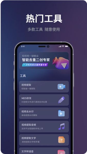 短视频一键搬运App是一款视频处理软件,支持音视频提取、视频去水印、视频剪辑等功能,为用户带来高效便捷的跨平台素材处理。软件支持抖音、快手、火山视频、微博、小红书等平台,用户只需将需要处理的视频连接粘贴,即可一键提取视频,可将原平台中不能保存的视频保存至本地。