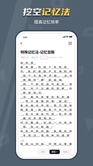 背个x啊app是一款非常有效的记忆软件,大部分人都是记忆力不好,想要记住一串密码或者一段文字甚至是一篇文章,苦于没有好的记忆方法只能死记硬背效果还低,那么这款背个X啊软件就能很轻松的帮到你。目前软件采用了科学的记忆方法联想记忆法,将文章或者字符串间隔进行隐藏,得到两个版本,两个版本的内容合在一起就是一篇完整的内容了,先将一个版本的内容进行熟记然后到第二个版本联想记忆,这样一来记忆效率将成倍提升,再也不用死记硬背了,掌握这个记忆方法将很快背出难记拗口的内容。另外背个x啊还有各种记忆训练的方法,专门提升记忆能力,快来下载体验吧!