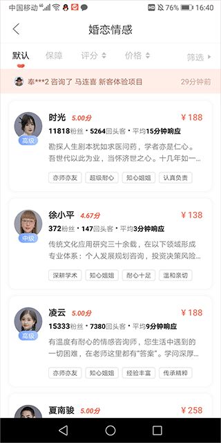 4、无论是情感还是事业都可以在这里找到咨询师来进行咨询