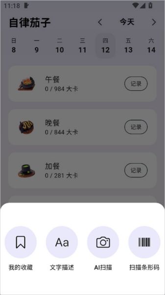 自律茄子的设计简单直观,让饮食追踪变得轻松。