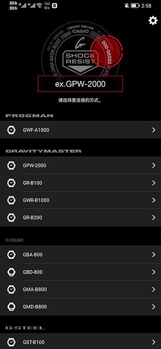 卡西欧G-SHOCK手表app官方版支持的手表型号包括: