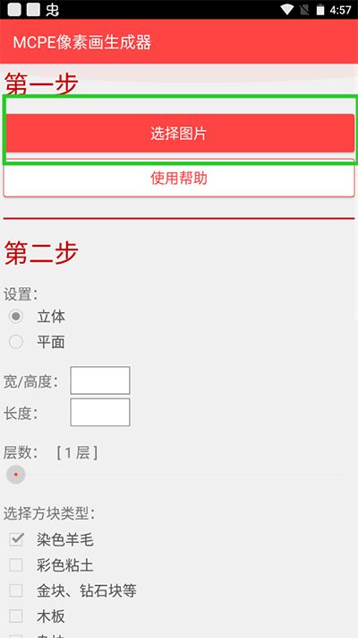 此外,MCPE像素画生成器还支持在创建像素应用程序时,选择要使应用程序使用哪些类型的块,这允许您仅使用接近纯色的minecraft的羊毛块或几乎每个块,还可以从任何大小的图像强大地生成像素艺术,非常的有意思。