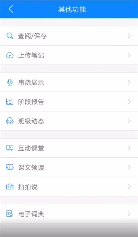 2、选择里面提供查阅、长传笔记、展示、阶段报告、互动课堂等等功能,我的点击上传笔记;