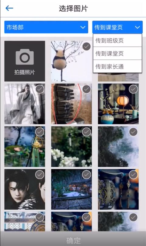 4、点击图片,选择你想要上传的图片,然后选择传到课堂页、班级页或家长通;